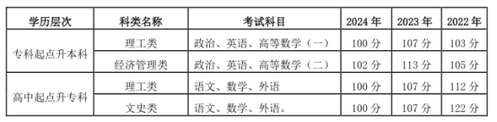 二、考试科目及2022-2024年河南省高等学历继续教育录取最低控制分数线